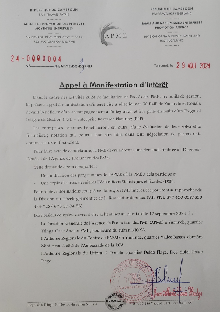Obtenez un ERP (progiciel de gestion intégré) adapté à votre secteur d'activité. Prenez en main votre entreprise et prenez des décisions éclairées. Ne manquez pas cette chance : Contactez-nous (numéro sur le document) dès aujourd'hui pour bénéficier de cette accompagnement gratuit de l'APME et transformez votre gestion !